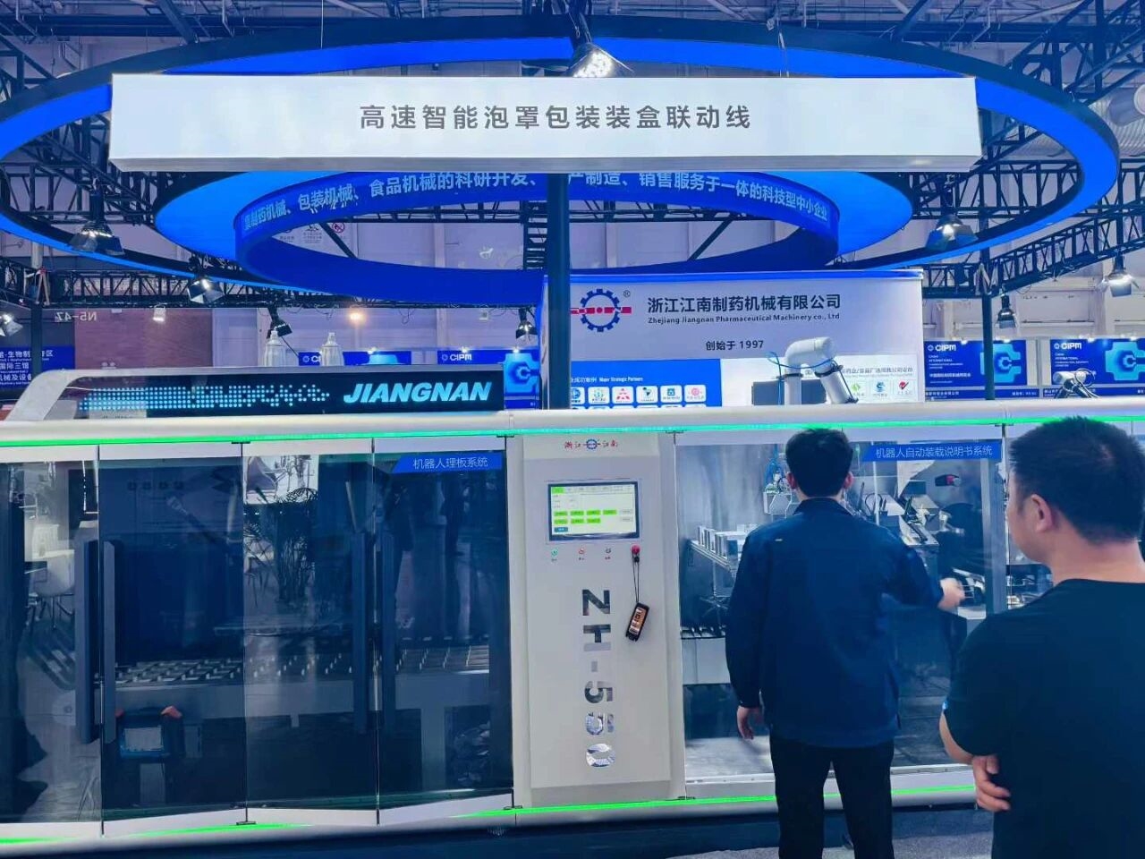 浙江江南制藥機械深耕行業28 年,擁有 61 項國家專利,產品遠銷 60 多國。此次除軟膠囊生產線外,還展出高速智能泡罩包裝裝盒聯動線、高效智能包衣機等拳頭產品,彰顯技術實力。